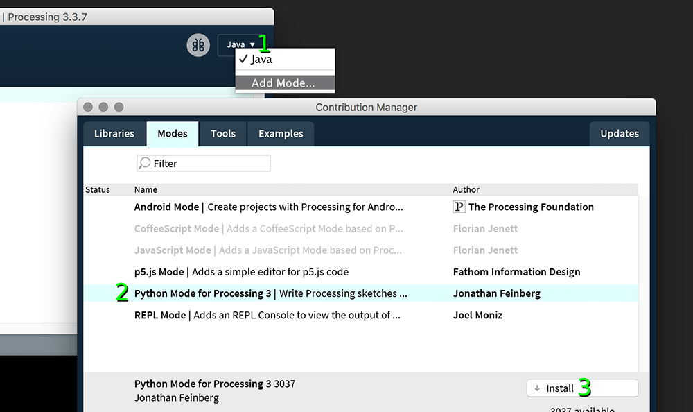 Processing is a programming language and integrated development environment that caters to the electronic arts, new media art, and visual design communities. Initially released in 2001, Processing featured a Java-based syntax, but 2014 saw the release of an additional Python mode -- Processing.py.